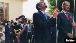 Sirna har’a Asmaraa keessatti geggeessame kana irratti argamuun kan Embaasicha banan Muummicha ministaraa Itiyoophiyaa Dr. Abiyyi Ahimad yoo tahan Prezidaantiin Ertiraa Obbo Isaayyaas Afewarqiis sirna kana irratti argamanii jiran.