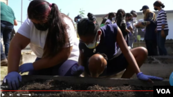 Biqiltuuwwan kan akka salaaxaa, raafuu fafakkaatan mana barnootaa Inglewood, Kaalifoorniyaa dhaabuun, ijoolleen biqiltuu dhaabuu akka baran gargaara.